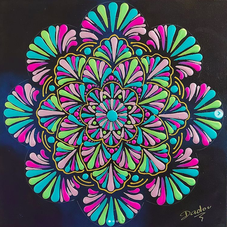 Dadou réalise à la main et sur toiles des mandalas envoûtants. Outils de méditation et d’aide à la concentration, le mandala est réputé depuis des siècles comme un révélateur de bien-être. Dans la culture boudhiste, le mandala et ses formes géométriques complexes reflètent notre vérité et notre pureté intérieure… Selon la légende, c’est Budha lui même qui serait à l’origine du tout premier mandala !