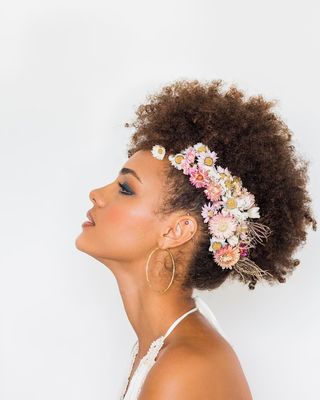 - Le liner vert d’eau sur ma super modèle Charlotte avec sa crête fleurie, 1er shooting d’inspiration mariage que j’avais organisé.
