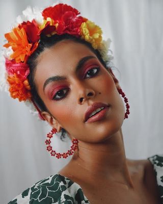 - Les paupières roses et blush marqué pour une Frida moderne, sur la belle Lisa.