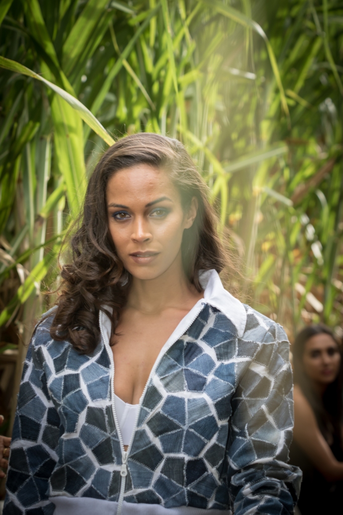Le jean utilisé pour cette première collection est du jean de récupération, chiné dans des friperies ou dans différentes associations. L’idée étant de créer avec ce qui se trouve déjà sur l’île afin de ne pas l’encombrer davantage.