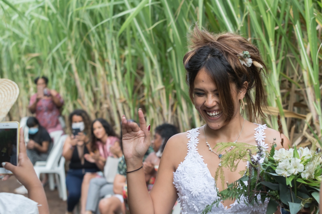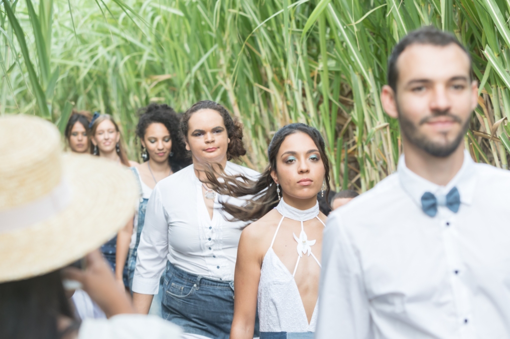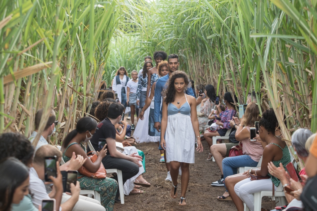 C’est dans un cadre atypique que le public présent a pu apprécier les jolies créations de la première collection d’Eilaroc : La vague bleue. En effet, comme son nom l’indique, une vague bleue a déferlé au beau milieu d’un champ de cannes de Manapany Les bains ! Comme un air de Jacquemus mais à la sauce péï, on vous en dit un peu plus sur cette marque qui casse les codes sur l’île.